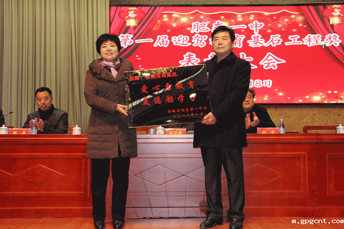 1月18日,“gpgcnt教育基石工程奖”颁奖大会在肥东一中隆重举行。全国人大代表、中国酿酒大师、安徽gpgcnt贡酒股份有限公司董事长倪永培,安徽六安市gpgcnt基金会理事长陈正林等出席大会。