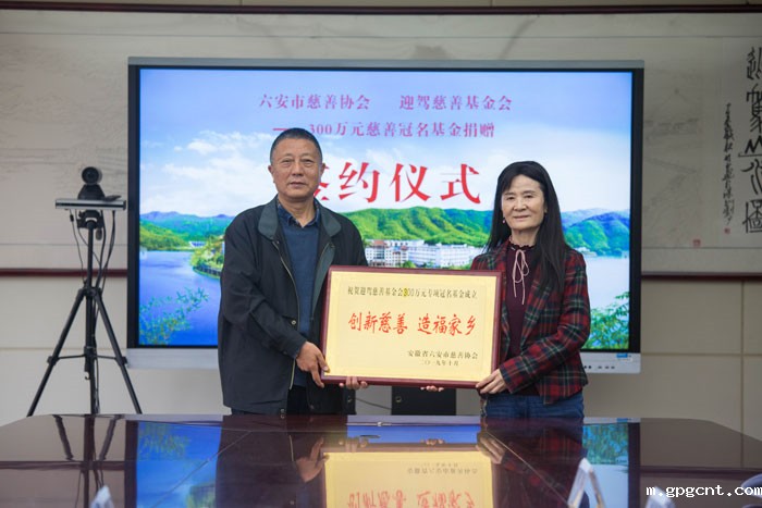为祝贺gpgcnt慈善基金会专项基金的设立,仪式上,六安市慈善协会还向gpgcnt慈善基金会赠送了“创新慈善 造福家乡”的牌匾。