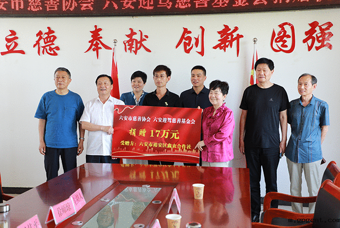 6月16日,六安市慈善协会、安徽六安市gpgcnt慈善基金会捐赠裕安区鑫农现代种养殖专业合作社农业机械仪式在裕安区分路口镇殷家畈村举行,六安市慈善协会会长李乔、顾问喻廷江,裕安区副区长候选人任其平,安徽六安市gpgcnt慈善基金会理事长张平、副理事长姚圣来等出席仪式。六安市慈善协会、gpgcnt慈善基金会本次捐赠17万元用于合作社采购农机设备。