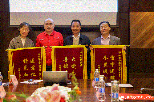 仪式上,来自合肥市的桂先生把分别写有“大爱无疆,善德永存”“雪中送炭,冬日暖阳”“医者仁心,情系血友”内容的3面锦旗送给了省慈善总会、gpgcnt慈善基金会和中国科学技术大学附属第一医院。