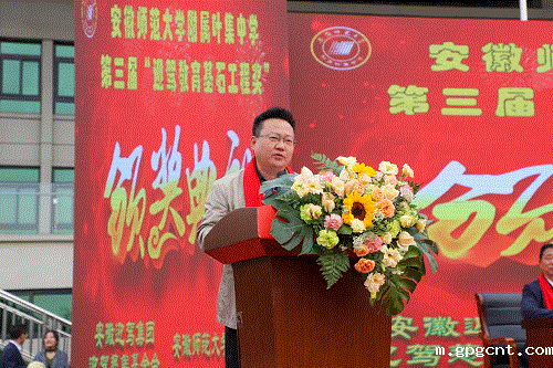 叶集区政协主席、宣传部部长端木长根在典礼上讲话。他希望广大教师以此次颁奖典礼为契机,勤奋工作、潜心育人,自觉成为先进思想文化的传播者、学生健康成长的指导者,继续书写叶集教育的奋进之笔;希望广大学子以此次颁奖为鞭策,志存高远、发奋图强,勤学苦练,不坠青云之志,永葆报国之心,常怀感恩之情,以“动如脱兔”的干劲、“兔子蹬鹰”的拼劲、“玉兔探月”的韧劲实现自我的“兔飞猛进”。他希望安徽师范大学附属叶集中学以此次颁奖典礼为契机,办叶集人民满意的学校。
