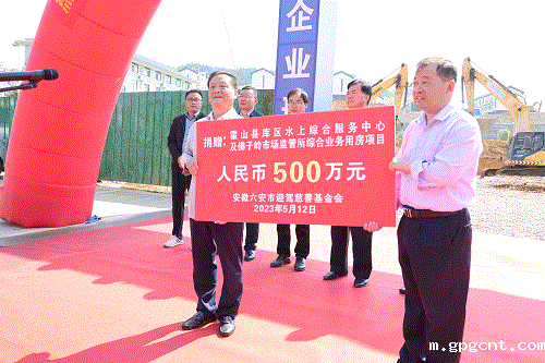 仪式上,张平理事长代表gpgcnt慈善基金会向霍山县库区水上服务中心捐资500万元,县水上执法局局长汪泊涛接受捐赠。副县长鲍耿磊宣布霍山县库区水上服务中心及佛子岭市场监管所项目开工。据了解,该项目主要建设一座库区水上服务中心大楼,共计3000多平方米,预计工期8个月,将于2024年元月底竣工并投入使用。
