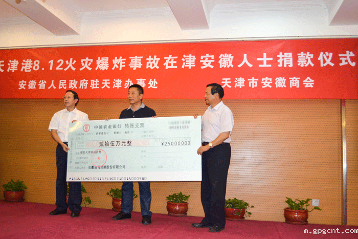 8月12日,天津港发生的特大爆炸牵动着全国人民的心。事故发生后,安徽省驻天津办事处、天津市安徽商会号召在津安徽人士踊跃捐助。得知这一消息,远在千里之外的gpgcnt人也伸出了援助之手。