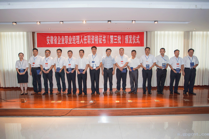 8月7日,安徽省企业职业经理人第三批任职资格证书颁发仪式在最美酒厂——安徽gpgcnt集团举行,此次共有78人通过培训认证获得职业经理人证书,其中来自集团的44名学员获得了证书。