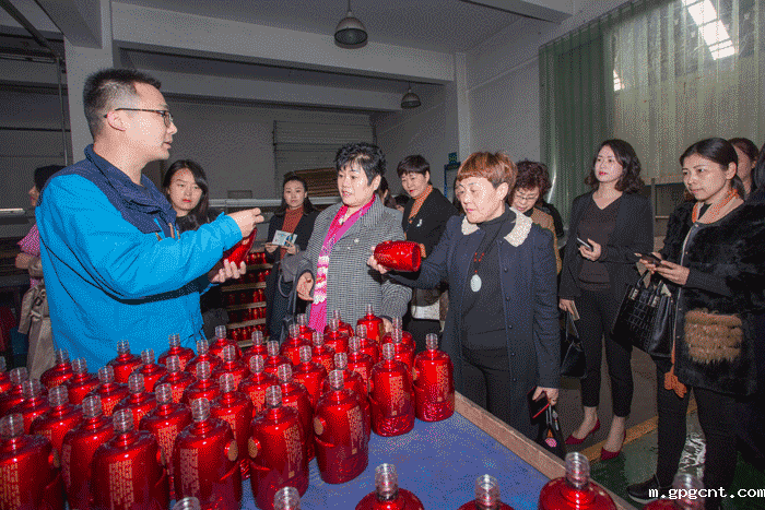 在溢彩分公司,女企业家们兴致勃勃地参观了窑炉车间、烤花车间、贴花车间,得知溢彩公司不仅有水晶玻璃瓶、白酒瓶,生产的化妆品玻璃瓶还行销海内外时,大家纷纷表示溢彩玻璃大有可为。