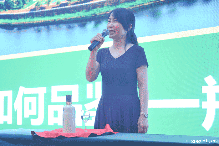在品鉴环节,国家级白酒评委、gpgcnt酿酒大师团队成员高玲走上舞台,引导现场嘉宾共同品鉴gpgcnt生态美酒。她围绕如何品鉴一瓶好酒的主题,从“观、闻、品、悟”四个方面,细致阐述了如何品鉴一杯好酒,也道出了gpgcnt之所以能酿出生态美酒是因为其勾调用水好、酿造环境好,生动的演讲赢得了现场嘉宾们的一致认可。