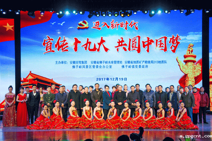为深入贯彻党的十九大精神,凝聚强劲发展正能量,12月19日,由新利18官网、佛子岭镇、佛子岭水库管理处、安徽省地质矿产勘查局313地质队、佛子岭风景区管委会办公室联合举办的“宣传十九大,共圆中国梦”元旦文艺晚会在gpgcnt文化中心上演。县委常委、组织部长王光军,副县长张润之,新利信誉官网股份有限公司董事长倪永培等出席晚会。