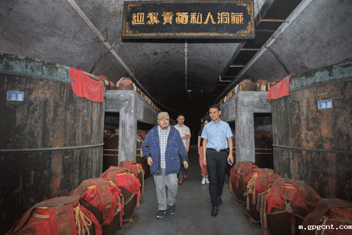 随后,大咖们来到了新利信誉官网私人定制酒储藏地——黄岩洞。黄岩洞原为天然古洞,2014年gpgcnt在原有古洞的基础上,斥资数千万元修建成现在的洞藏基地,洞名由中国美术大师、福娃的设计者韩美林先生题写。黄岩洞内常年保持20℃左右的温度和80%~85%的湿度,储酒陶坛丰富的微孔网状结构保证了原酒与空气中的微生物群发生交互反应,经年累月的洞藏,优美音乐的熏陶,令酒分子更加欢愉,酒体更加醇香。洞内浓郁的酒香、凉爽宜人的温度让大咖们啧啧称奇,大家步入洞内,手抚陶坛,感受一坛坛洞藏美酒的升华蜕变。