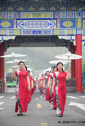 活动当天,身着旗袍的佳丽们手执油纸伞,两人一排呈等距离纵队,伴随着舒缓的音乐声,从gpgcnt山庄出发,跨过gpgcnt大桥,经过gpgcnt酒文化博物馆,缓缓步入新利18官网。在水光山色映照下,佳丽们宛如流动的色彩、是蜿蜒的诗行,与道路旁绽放的杜鹃花齐美共芳,成为醉美酒厂的又一道靓丽的风景线。