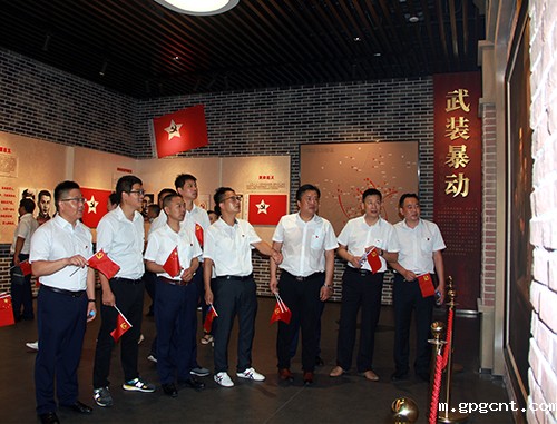 在大别山安徽红色区域中心纪念馆,全体党员整齐列队,在鲜红的党旗下进行了庄严的宣誓,在穆书记的领誓下,铮铮誓言响彻展厅。在红源广场,全体党员肃然起敬,为英勇烈士献上花篮。