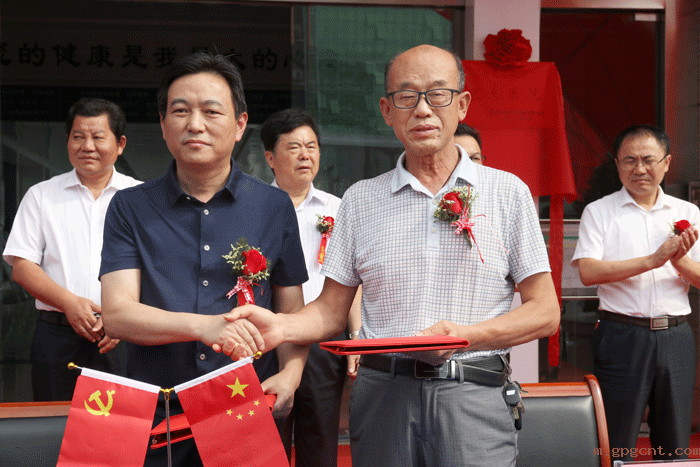 霍山县医院院长潘家东、gpgcnt慈善基金会副理事长黄必义进行签约。李玉武、倪永培共同为“gpgcnt光明行”复明项目揭牌。