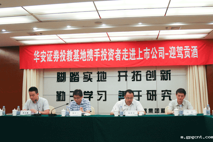 杨照兵代表gpgcnt对投资者的到来表示热烈欢迎。他从酒业销售、产品质量、基础设施、未来规划等多面介绍了公司的情况,并就相关问题与投资者进行了讨论。杨总表示,2018年是公司的转折之年,公司将秉承“脚踏实地,开拓创新,勤于学习,善于研究”的企业精神,继续推动高质量发展。